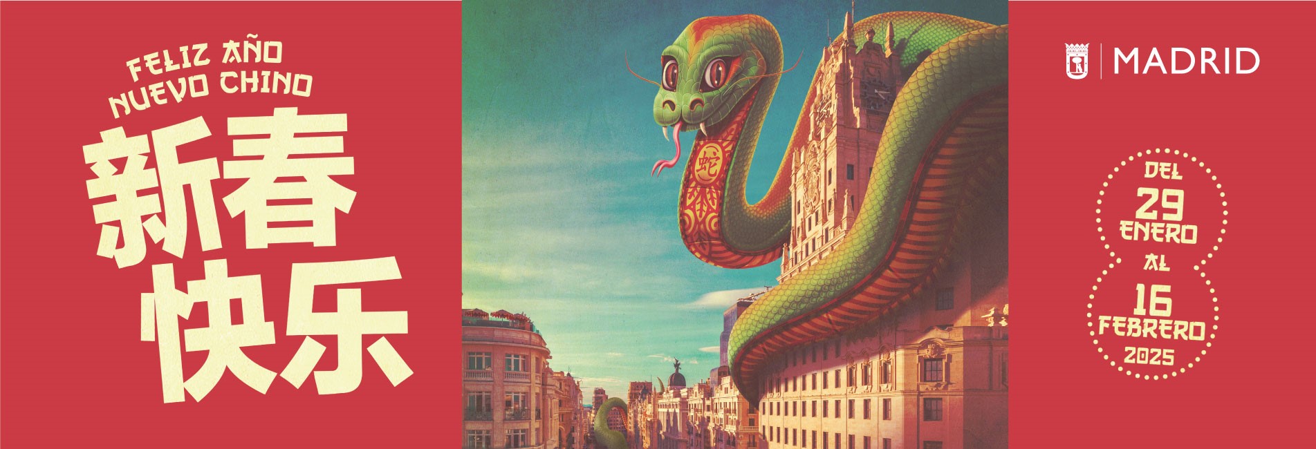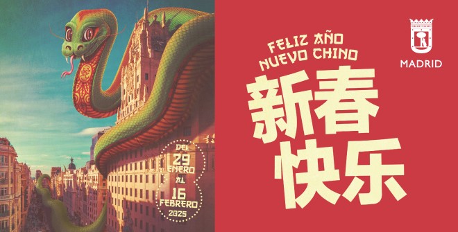 El Área de Cultura, Turismo y Deporte del Ayuntamiento de Madrid facilita la descarga del cartel oficial de la campaña de AÑO NUEVO CHINO 2025 creado por Bakea.